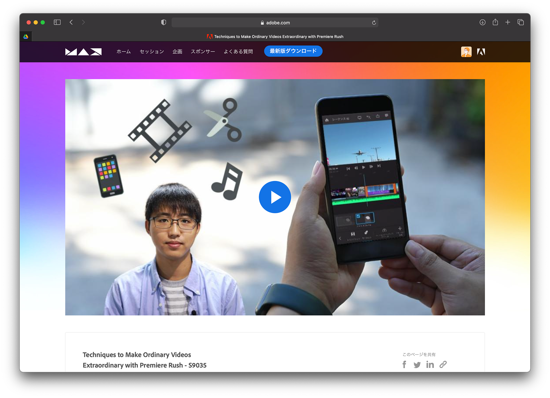Session「普通の動画がここまで変わる!Premiere Rushの簡単編集術」